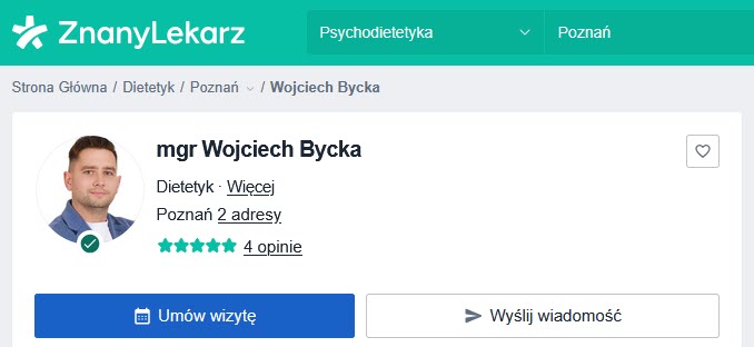Nazywam się Wojciech Bycka i jestem psychodietetykiem. Pomagam ludziom odzyskać zdrowie, równowagę i spokój – nie tylko w ciele, ale i w psychice.